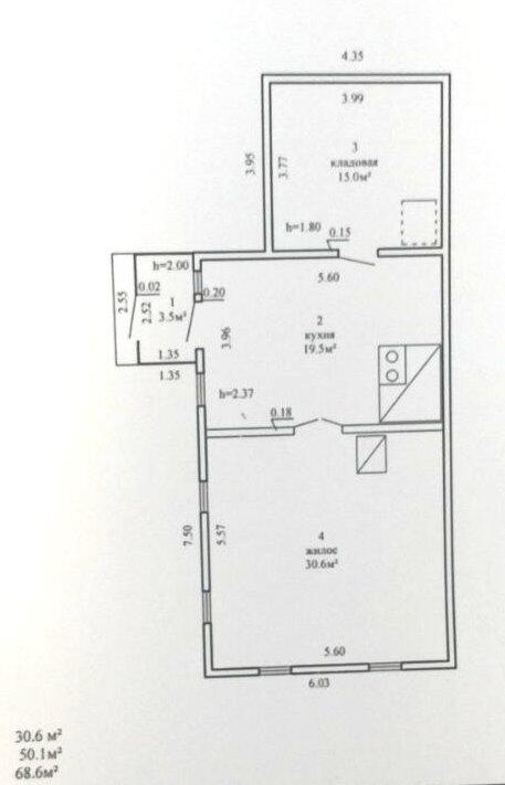 Площадь о/ж/к: 68.6 / 30.6 / 19.5 м²